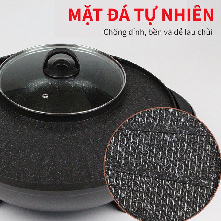Nồi Lẩu Nướng Đa Năng BBQ 2 In 1 Vừa Lẩu Vừa Nướng, 2 Ngăn Cao Cấp, Mặt Đá Chống Dính Dễ Lau Chùi, Bảo Hành 12 Tháng