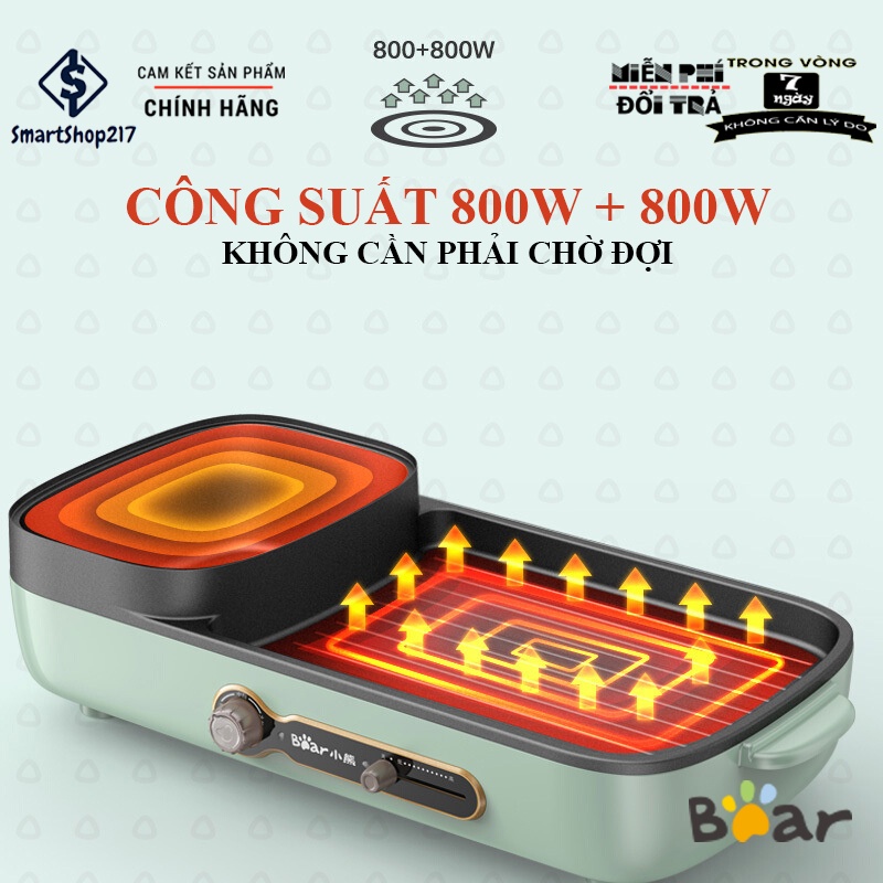 Nồi Lẩu Nướng Đa Năng Bear 2 Trong 1 - BH 18 Tháng