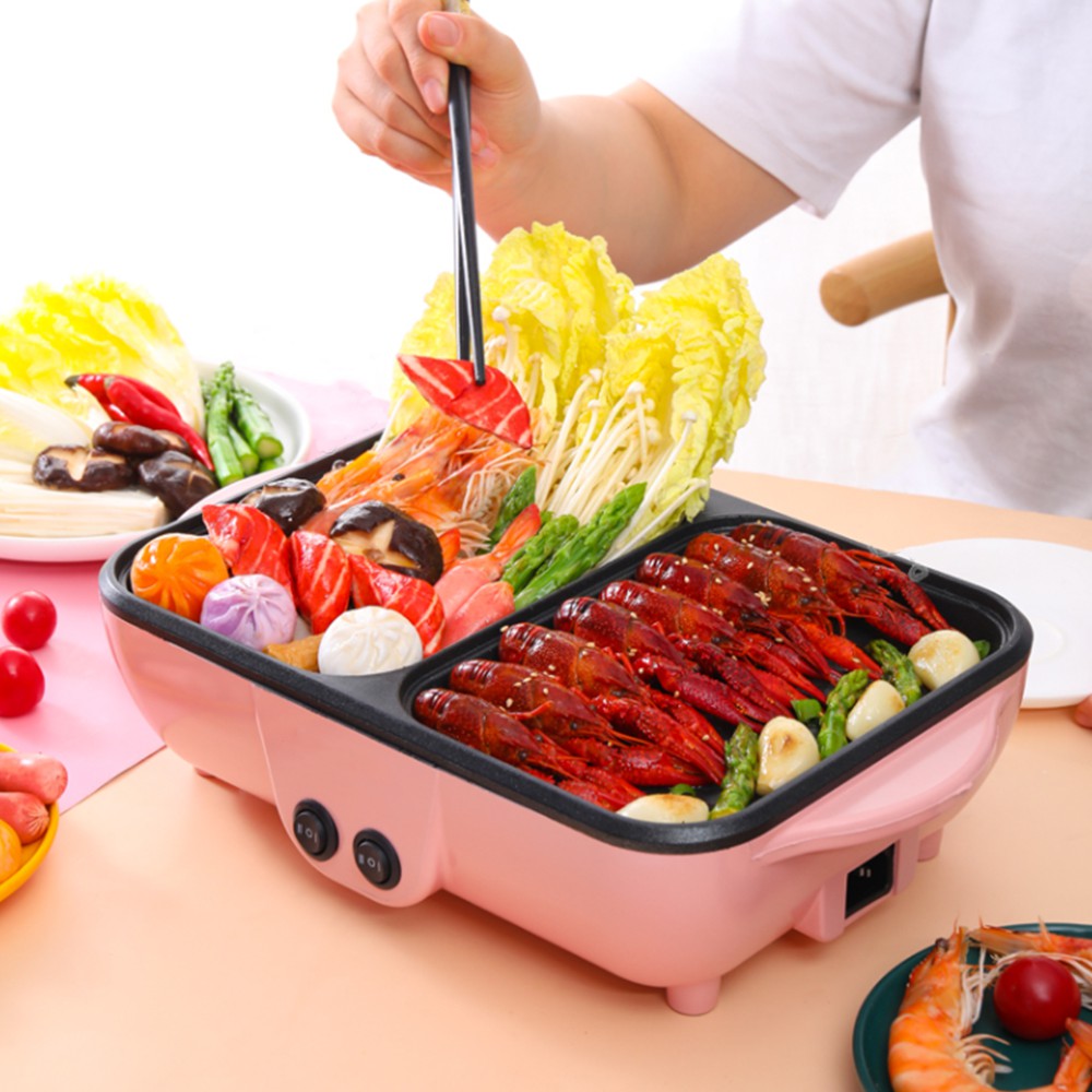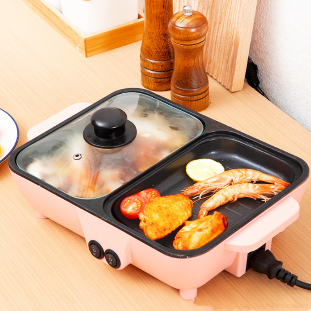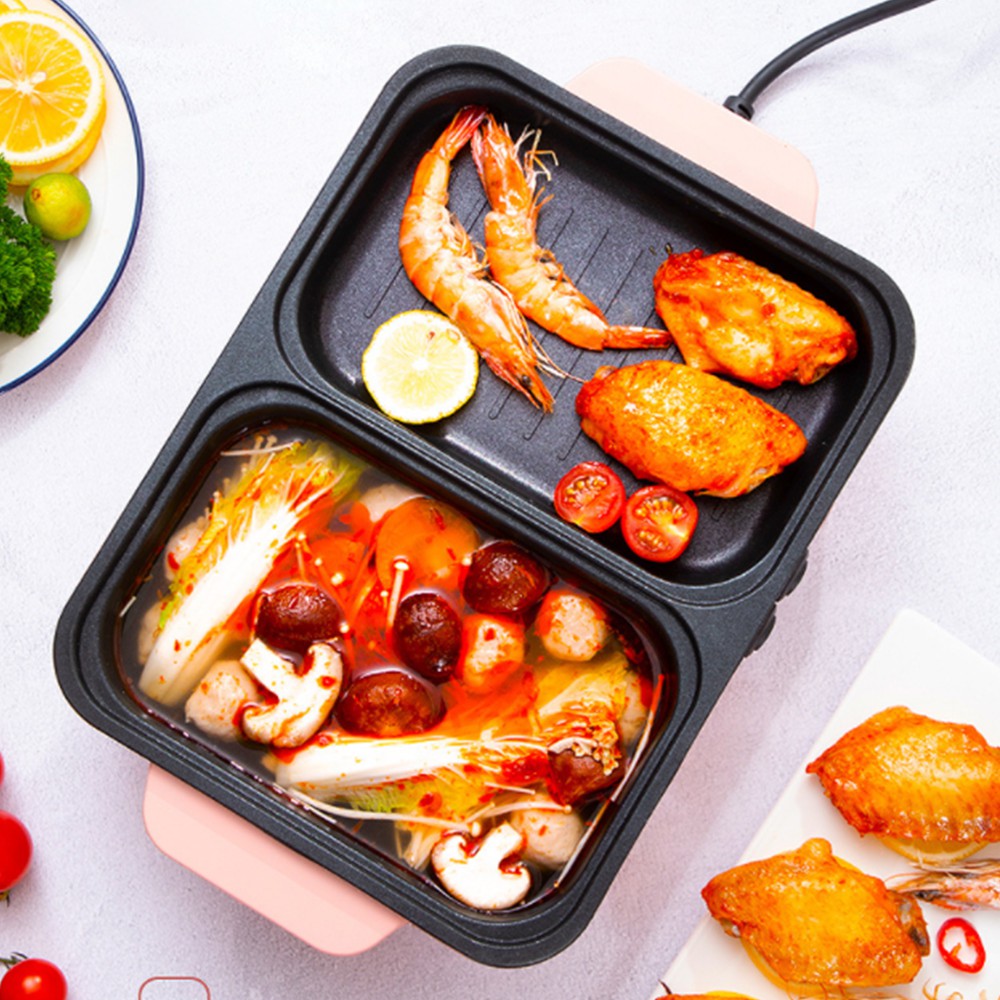 Nhà cửa & Đời sống > Dụng cụ nhà bếp > Lò nướng & phụ kiện || Nồi lẩu nướng đa năng cao cấp 2 ngăn siêu chống dính, bếp lẩu nướng 2 in 1 mini tùy chỉnh nhiệt độ tiện lợiCòn hàng