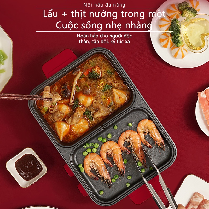 - Bạn vừa có thể tổ chức một bữa nướng và lẩu 2 người cùng một lúc mà không phải chuẩn bị đến 2 chiếc bếp