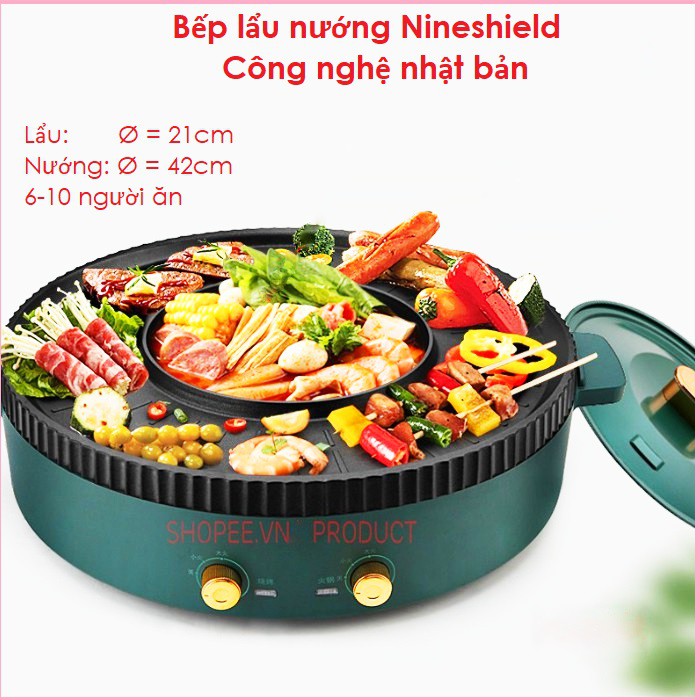 Nồi lẩu nướng đa năng cao cấp Nine shield công nghệ nhật bản bảo hành chính hãng 12 tháng