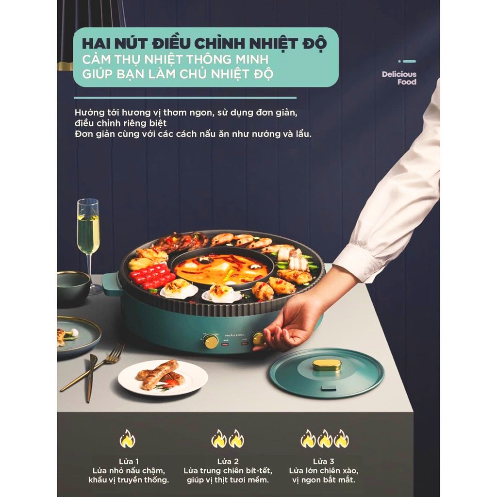 - Vào những dịp gặp mặt và nhất là trong không khí hơi se lạnh, món lẩu và món nướng thường được nhiều người lựa chọn vì dễ làm và cũng dễ ăn. Tuy nhiên, trong nhóm người thường sẽ có một vài vài thích ăn đồ nướng và số còn lại thích ăn lẩu. Nhà sản xuất hiểu được nhu cầu đó và đã nghiên cứu cho ra Sản phẩm nồi lẩu nướng đa năng kết hợp, đáp ứng đầy đủ nhu cầu của tất cả các thanh viên trong gia đình hoặc trong nhóm nhỏ vào mỗi dịp tụ tập, hội họp.