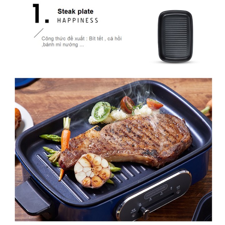 - 1 bếp 3 tác dụng với 3 khay ( hấp, lẩu, nướng)