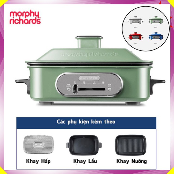 Bộ nồi lẩu nướng đa năng cao cấp Morphy Richards MR9088 hiện đang là món hàng được mọi người săn đón nhất hiện nay. Nồi được thiết kế vuông mang phong cách nghệ thuật, vô cùng trang nhã với 04 màu sắc cho bạn tùy chọn: Trắng ngà, Xanh biển, Đỏ, Xanh láMột nồi ba khay - Tiện tay thay đổi