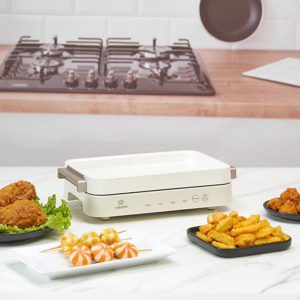 Nồi Lẩu Nướng Đa Năng Chống Dính 3 In 1 VERA HT39 - Nồi Lẩu Điện 3 Khay Nướng, Lẩu, Takoyaki - BẢO HÀNH 12 THÁNG