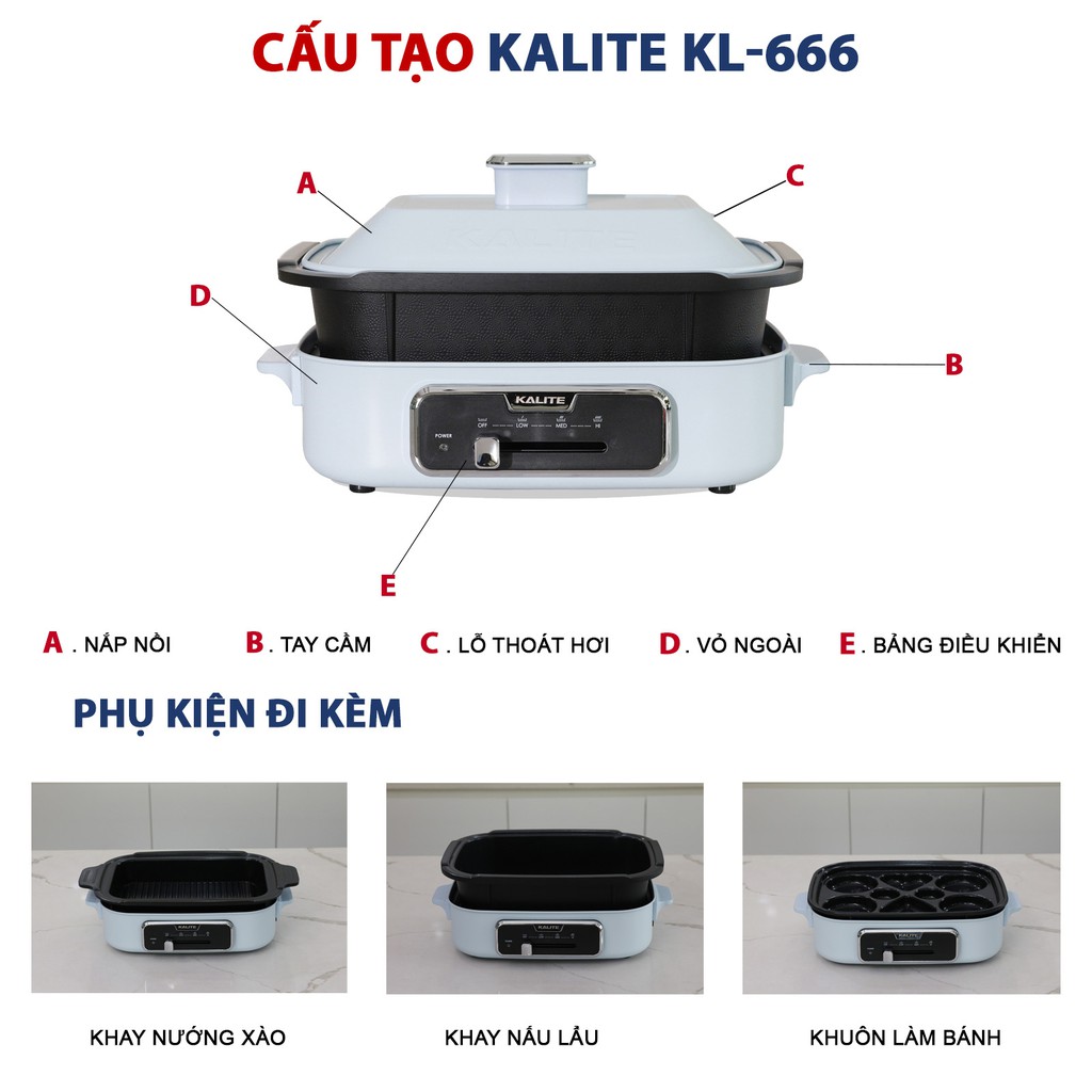 Giới thiệu Nồi lẩu nướng đa năng công suất 1300W KALITE KL 666 dung tích 4L hàng chính hãng