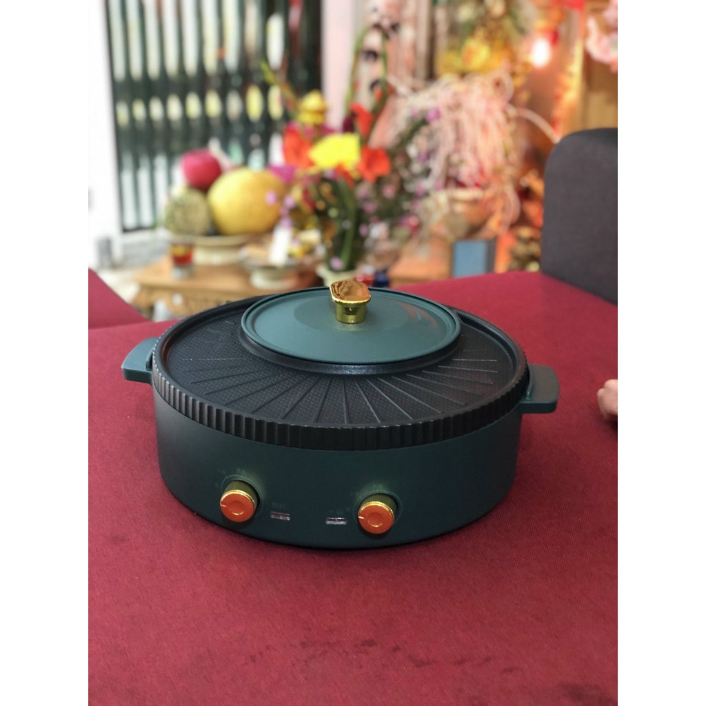 Nồi lẩu nướng đa năng tròn Nine Shield và AORAN, thích hợp dùng trong bữa ăn, bữa tiệc tại gia ,đơn giản,
