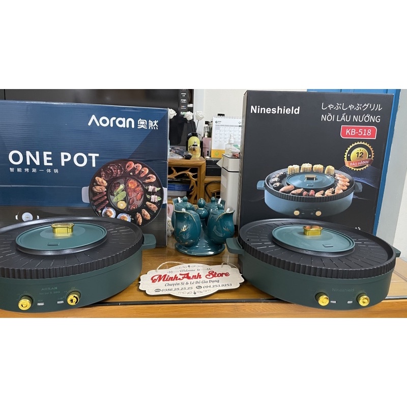 Giới thiệu Nồi lẩu nướng đa năng tròn Nine Shield và AORAN, thích hợp dùng trong bữa ăn, bữa tiệc tại gia ,đơn giản,