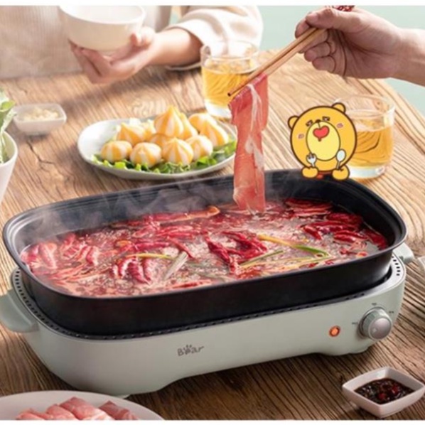 Nồi lẩu nướng điện 3 khay Bear bếp đa năng hàng quốc tế tích hợp 3 trong 1 siêu tiện lơi Gia dụng Bear Tuli MartNồi lẩu nướng đa năng bản quốc tế với bảng điều khiển tiếng anh, chăn cắm 2 chấu tiện lợi đi kèm hướng dẫn sử dụng tiếng Việt tiện lợi và dễ sử dụng. Đặc biệt, nồi lẩu 3 khay Bear SUBE004 sở hữu thiết kế thông minh, tích hợp 3 chức năng trong 1 siêu tiện lợi cho phép bạn làm nhiều món ăn khác nhau, thay đổi nhu cầu sửu dụng nhanh chóng.