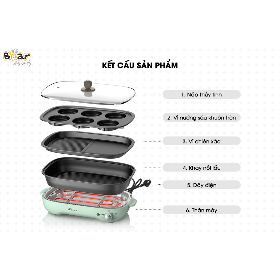 Nồi lẩu nướng điện 3 khay Bear bếp đa năng hàng quốc tế tích hợp 3 trong 1 siêu tiện lơi Gia dụng Bear Tuli Mart