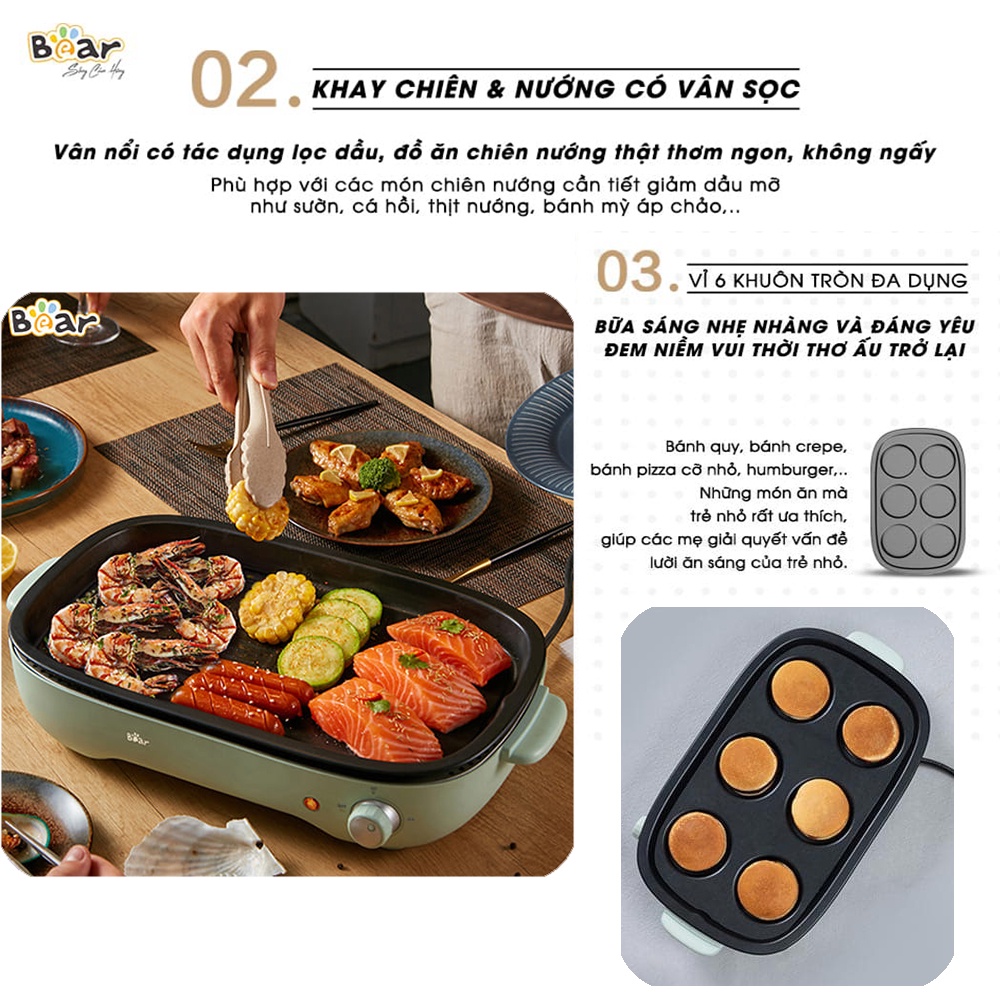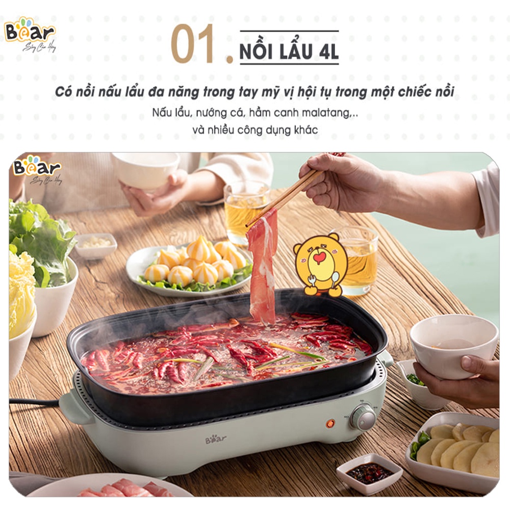 Nồi Lẩu Nướng Điện 3 Khay Đa Năng Mini Bear Lẩu Chiên Nướng 3in1 Bảo hành 18 Tháng - Himect