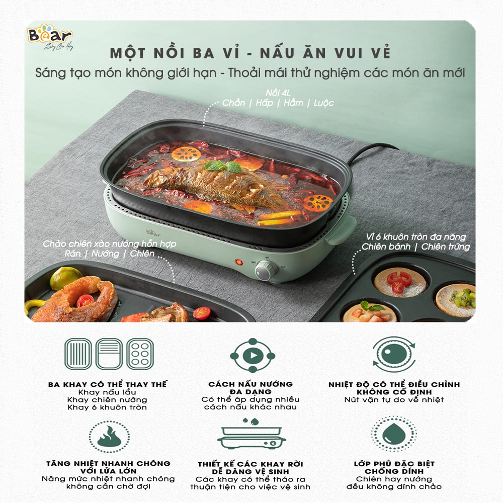 Thương hiệu: Bear | Xem thêm các sản phẩm Nồi đa năng của BearMô tả ngắn