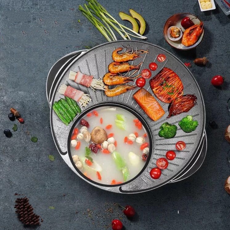 - Nồi Lẩu Nướng Điện 2 ngăn là sự kết hợp hoàn hảo giữa bếp nướng và bếp lẩu vô cùng tiện dụng. Với Bếp Lẩu Nướng Tròn, người sử dụng có thể vừa nướng nhiều loại thức ăn và đồng thời nấu lẩu cùng một lúc.