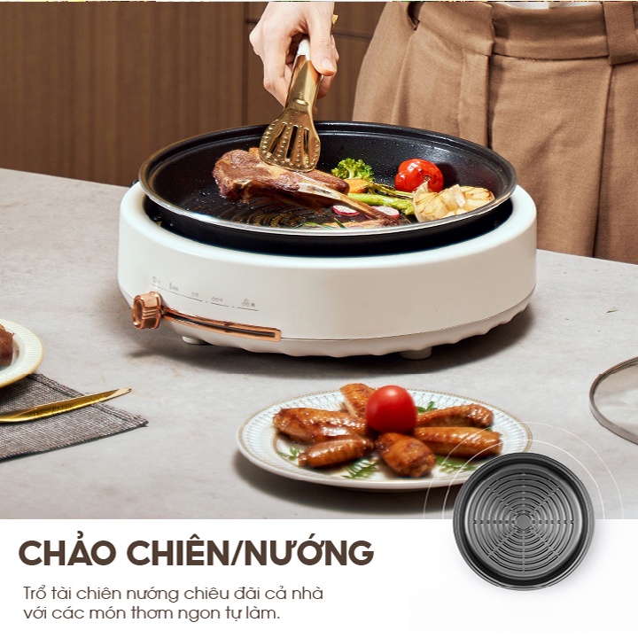 ☑️ Bộ Đầy Đủ: Đế gia nhiệt x Nồi lẩu x Khay nướng x Lồng hấp x Nắp đạy.