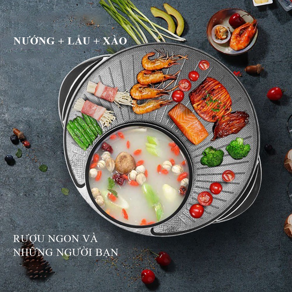 Nồi lẩu nướng điện đa năng, bếp nướng lẩu điện 2 ngăn đa năng mini, nồi nướng điện siêu tốc chống dính thế hệ mới.