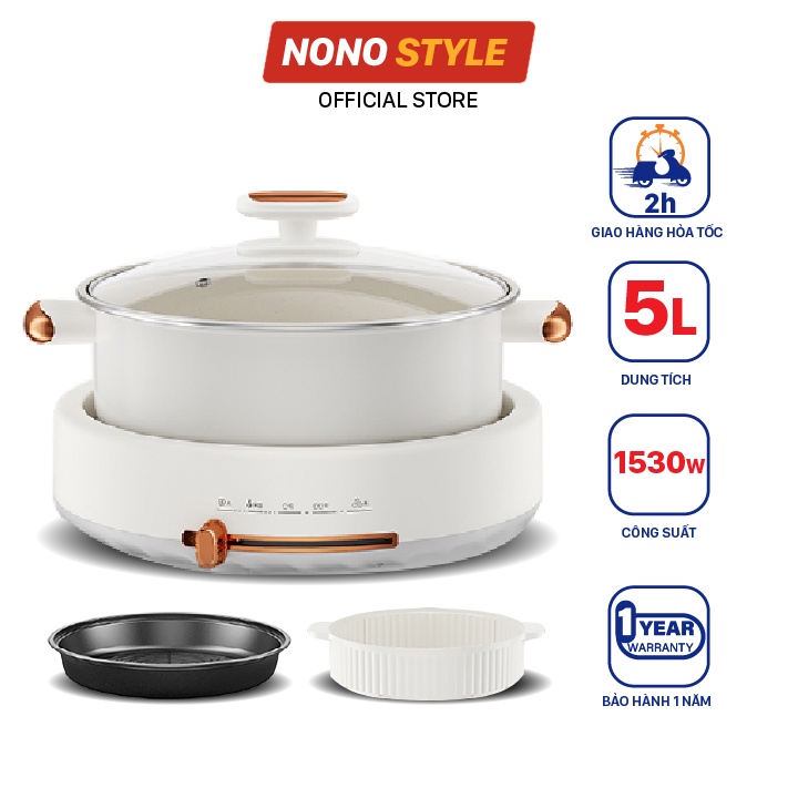 [Mã ELHADEV giảm 4% đơn 300K] Nồi Lẩu Nướng Điện Đa Năng Nonostyle 5L, 1350W, Bảo Hành 12 Tháng