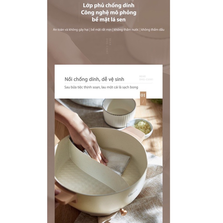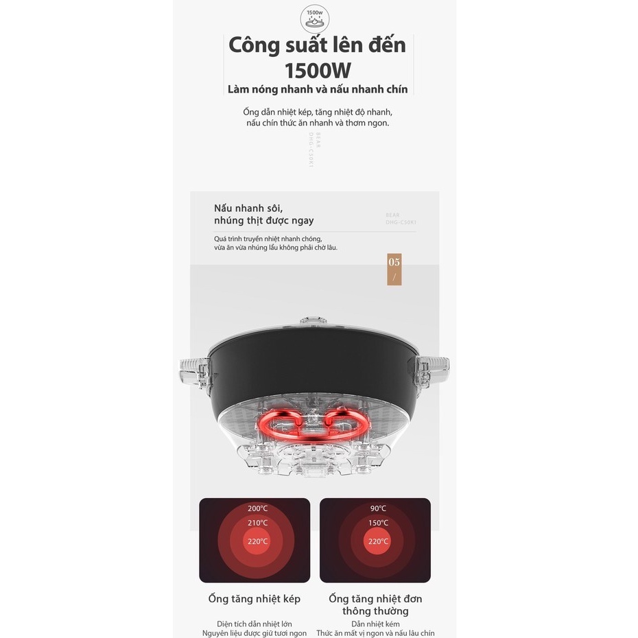 Nồi lẩu điện uyên ương Bear DHG-C50K1 5L 2 ngăn công suất lớn cho gia đình từ 2- 4 ngườiGIỚI THIỆU SẢN PHẨM: