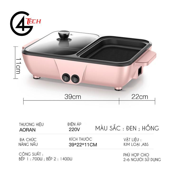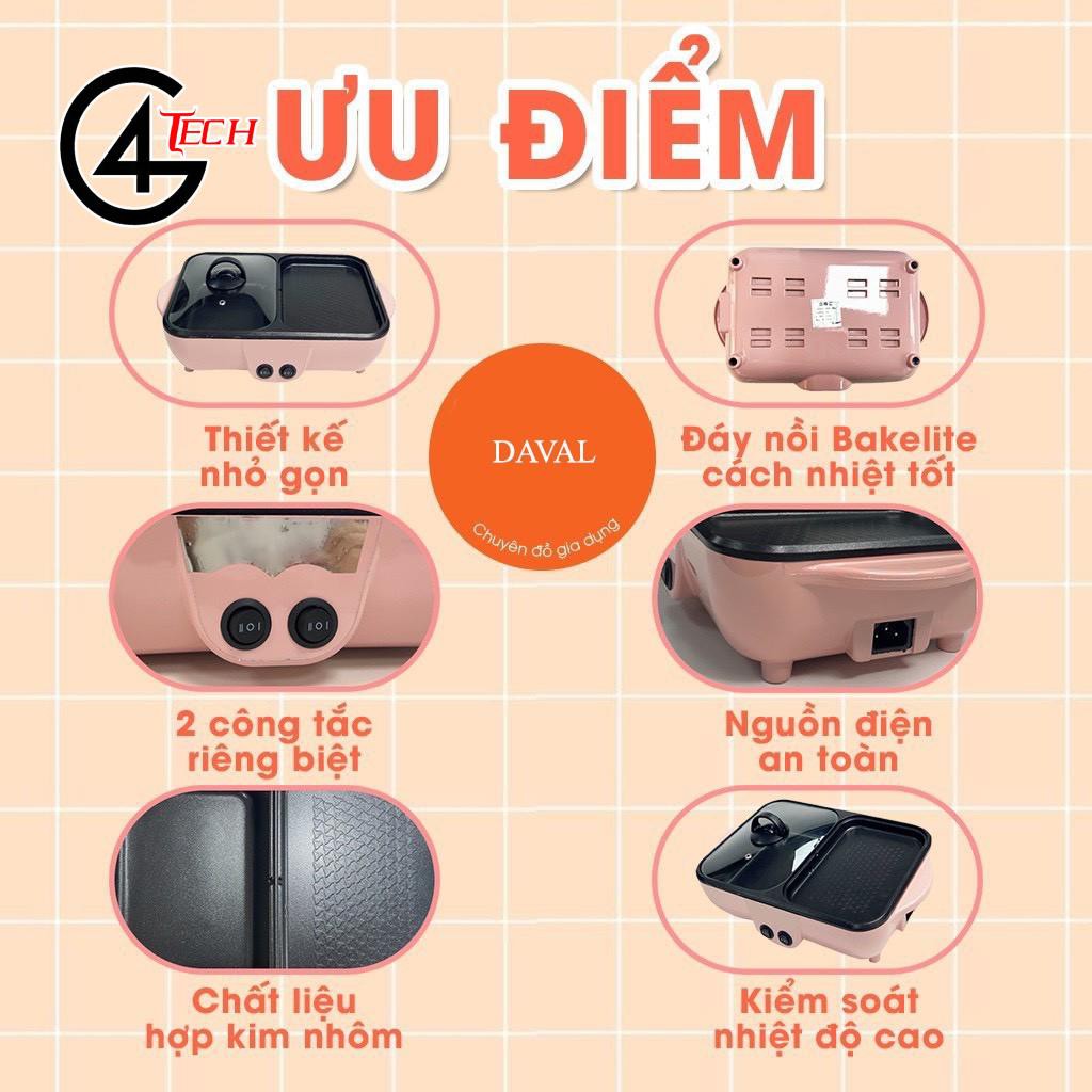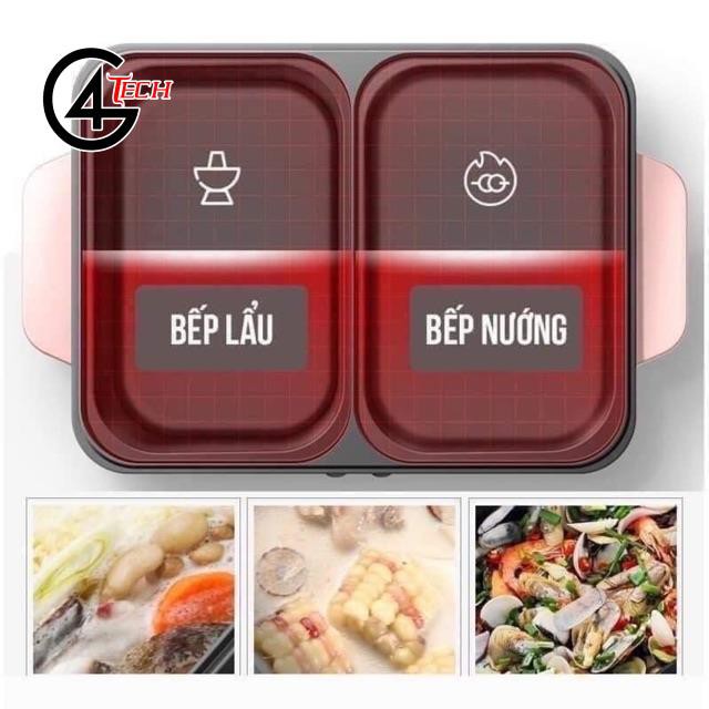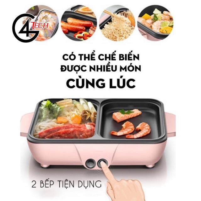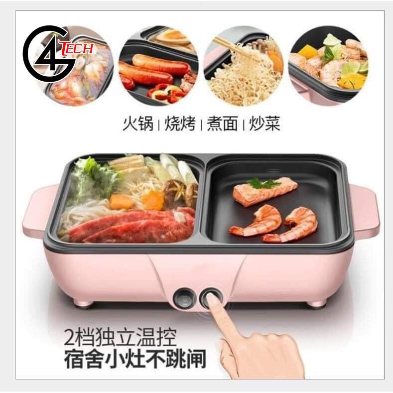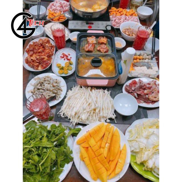 Nồi lẩu nướng điện Siêu chống dính, Bếp lẩu nướng mini 2 ngăn Cao cấp Bảo hành 6 tháng
