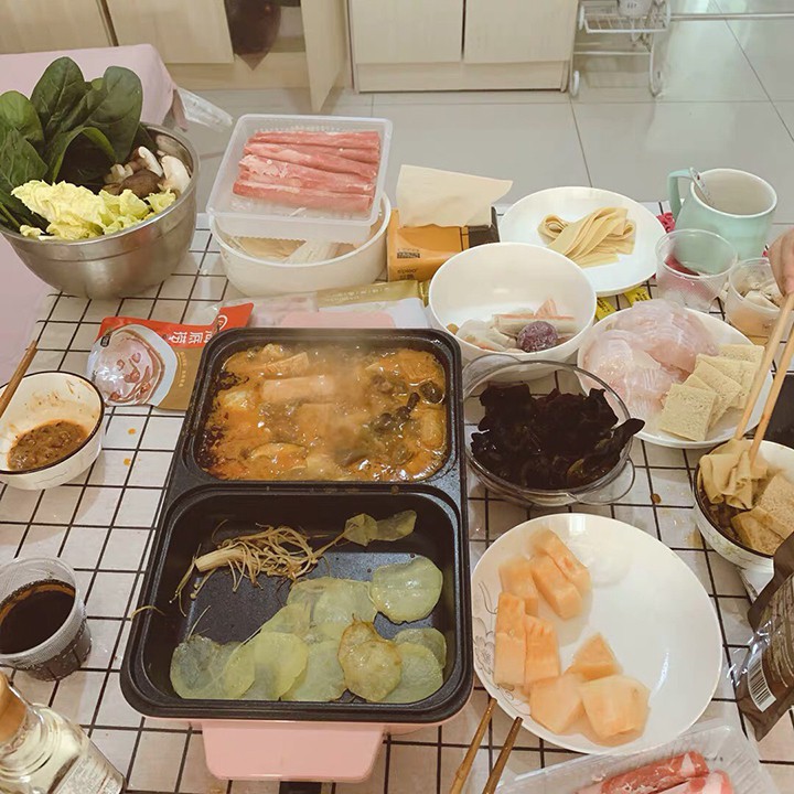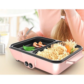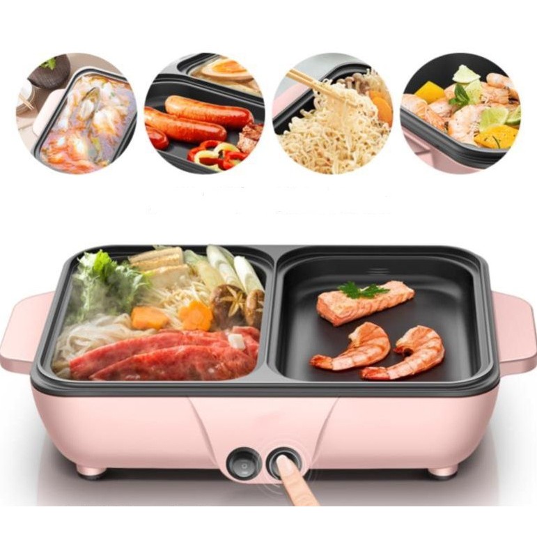 Bếp Điện Mini 2 Ngăn, Đế Chống Dính | Công Dụng 5 Trong 1 Có Thể Vừa Ăn Nướng, Vừa Ăn LẩuHàng có sẵn