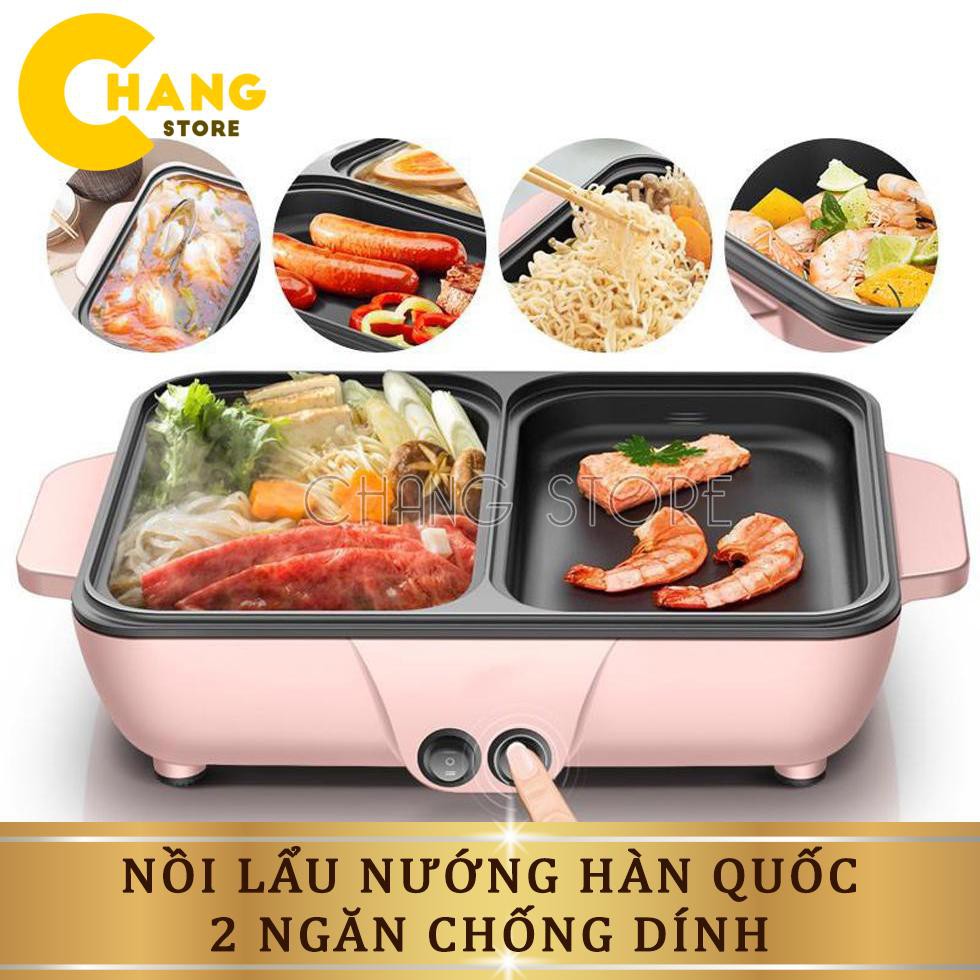 Nồi Lẩu Nướng Hàn Quốc 2 Ngăn Chống Dính Đa Năng Có Thể Rán Xào Tiết Kiệm Không Gian
