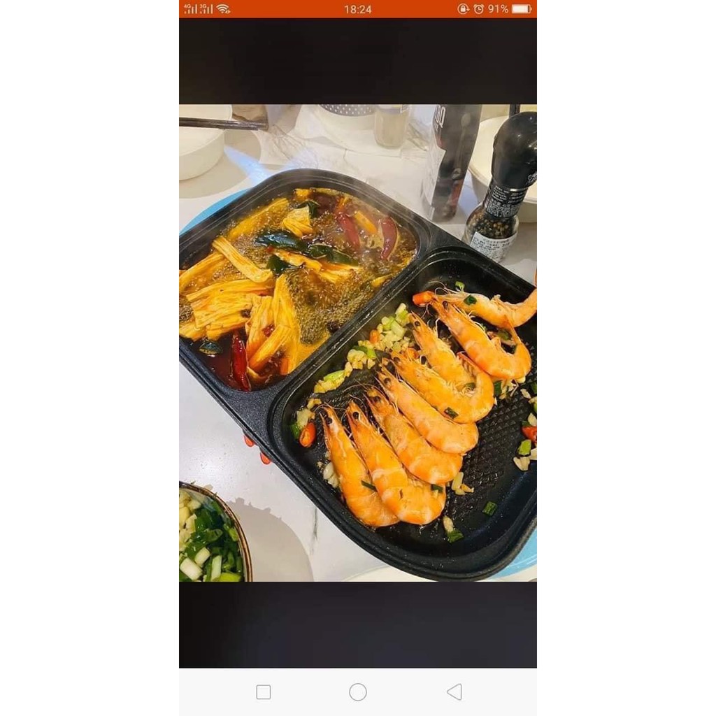 :pushpin: Thiết kế tiện dụng có thể nhúng lẩu và nướng cùng lúc, ngoài ra còn xào rán làm được tất tần tật các món luôn.
