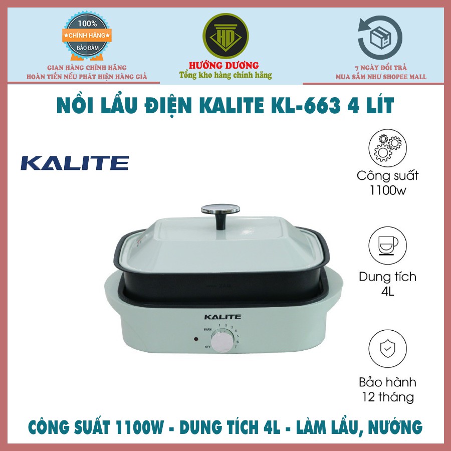 Nồi lẩu nướng Kalite KL-663 bảo hành 7 ngày đổi mới dung tích 4L hàng chính hãng