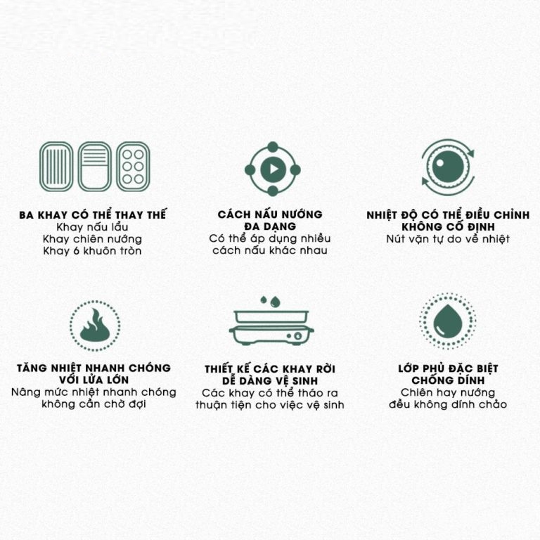 - Bộ gồm: 1 nồi, 1 thếp lẩu, 1 nướng, 1 tầng nướng bánh, 1 nắp kính