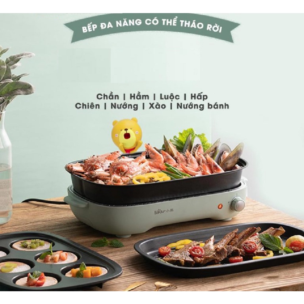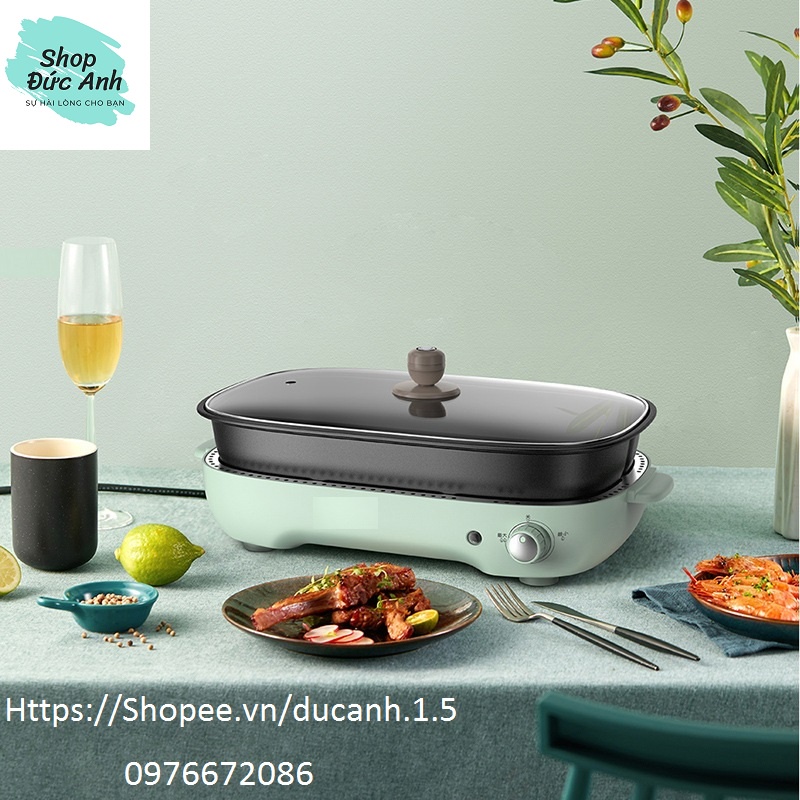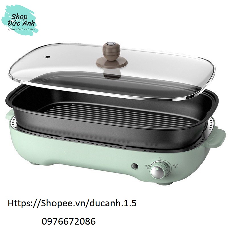 Nồi lẩu nướng làm bánh đa năng 3 in 1 1200W (Xanh)