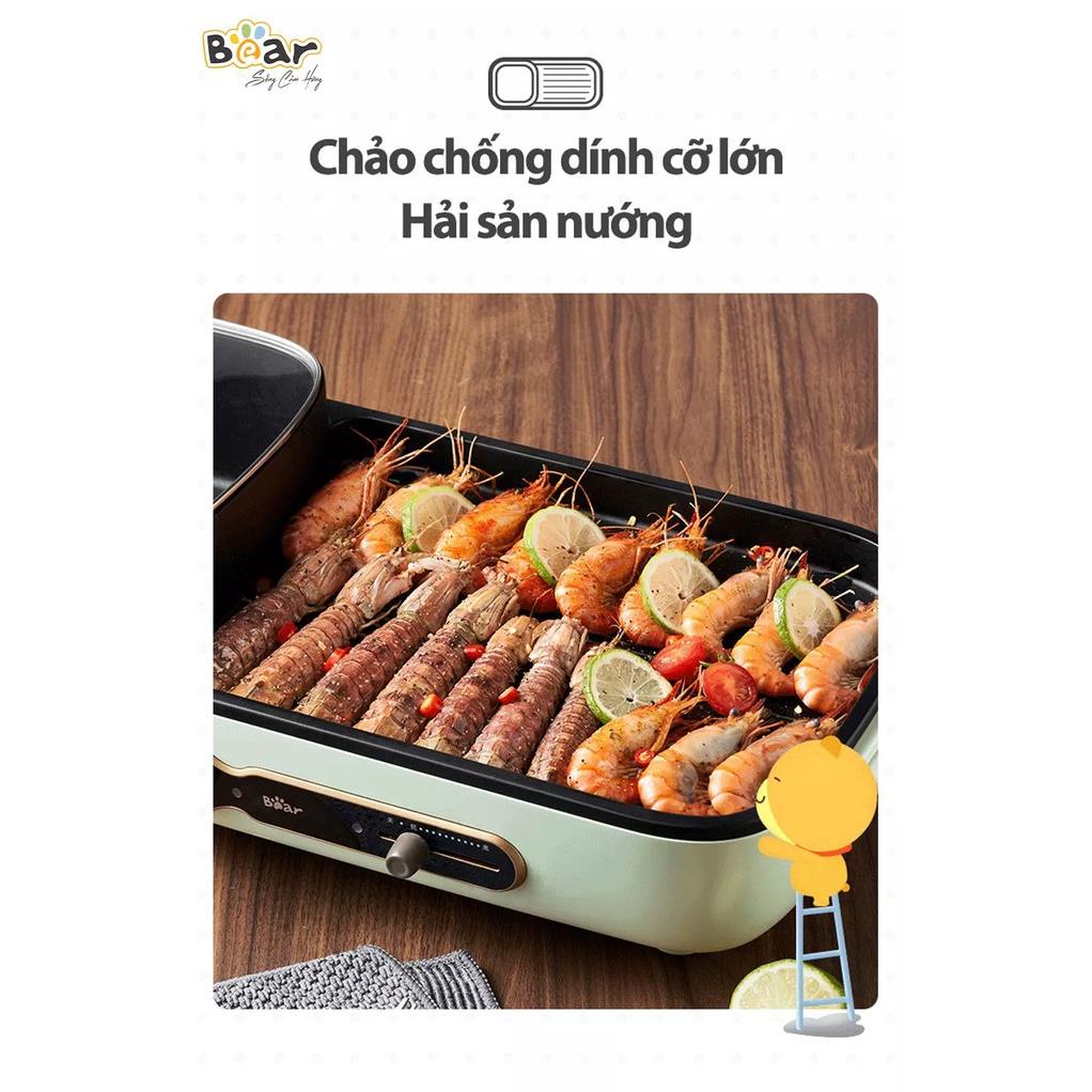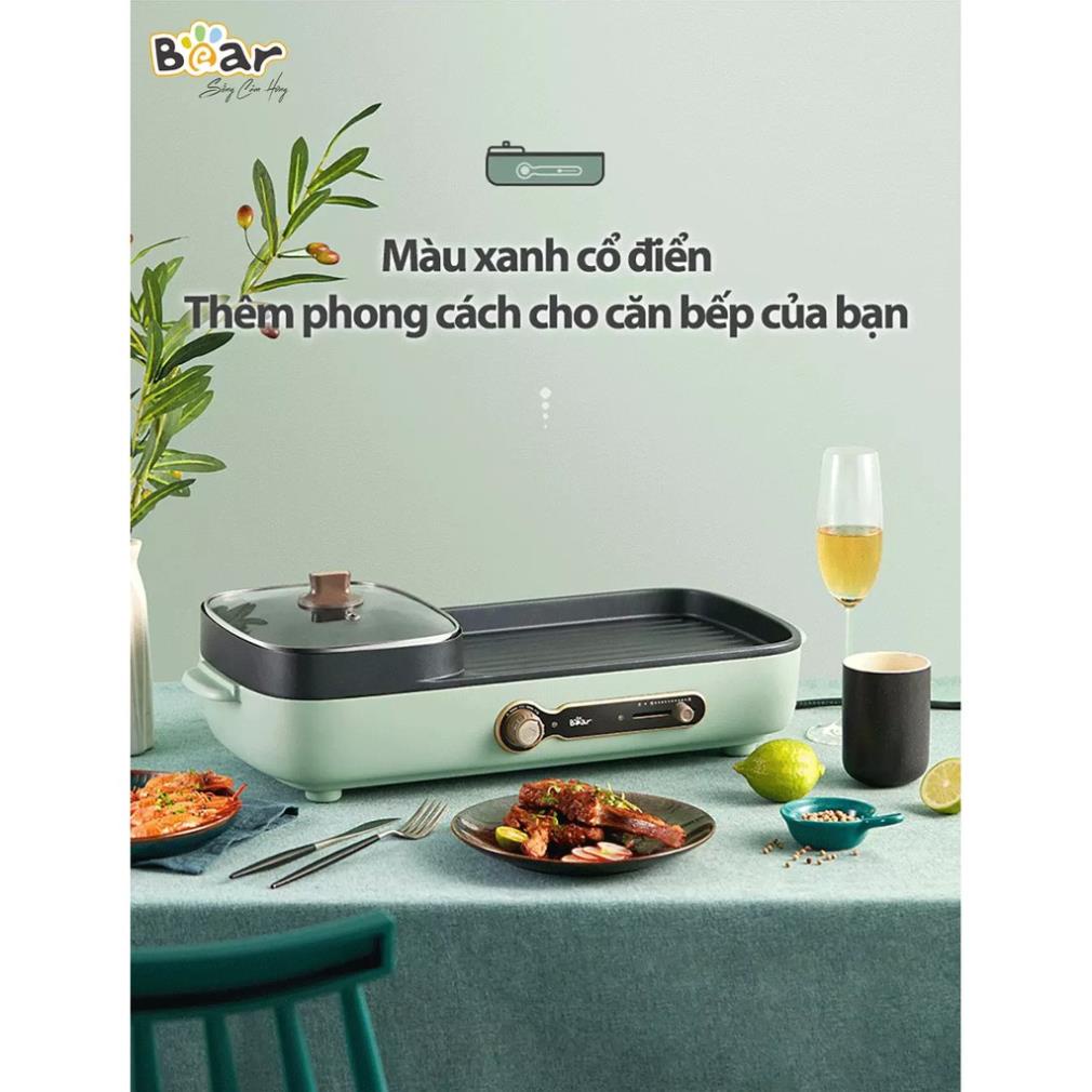 Nồi lẩu nướng mini 2 ngăn đa năng Bear DKL-C15G1 dung tích 3L - Bếp lẩu nướng mini cao cấp chống dính, CS 1600w, BH 18th