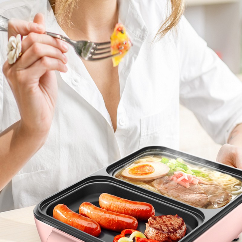 Nồi lẩu nướng mini 2 ngăn Hàn Quốc cao cấp - Bếp lẩu nướng 2 in 1 đa năng, nồi chống dính - Nồi nướng không dầu GD012