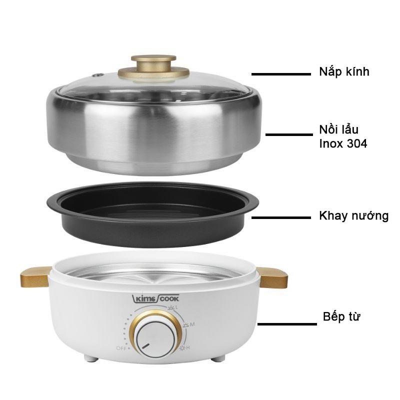 Nồi lẩu nướng mini đa năng 3 trong 1 Kims Cook