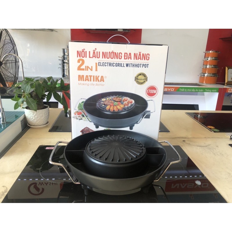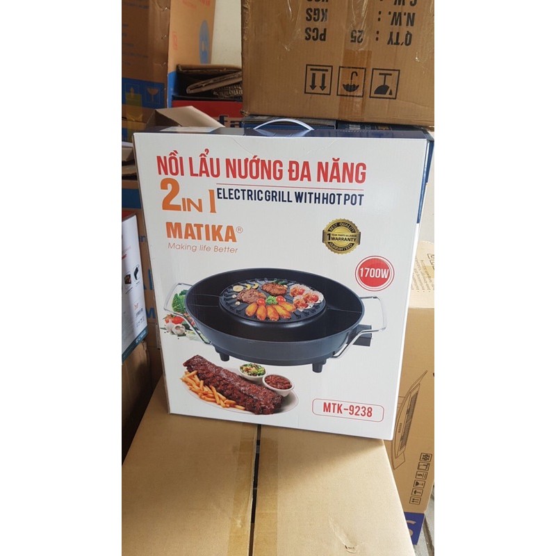 Giới thiệu Nồi lẩu nướng,nồi điện lẩu nướng 2in1 Matika MTK-9238 đa năng,bảo hành 12 tháng