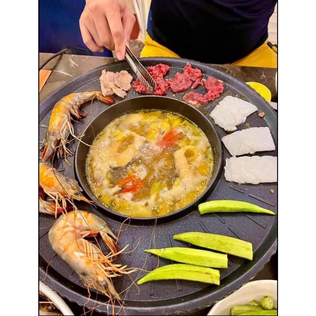 ✔️ Thiết kế kiểu mới, nồi ăn lẩu nằm gọn trong khay nướng, nồi có 2 ngăn giúp thưởng thức cả 2 món ăn cùng lúc