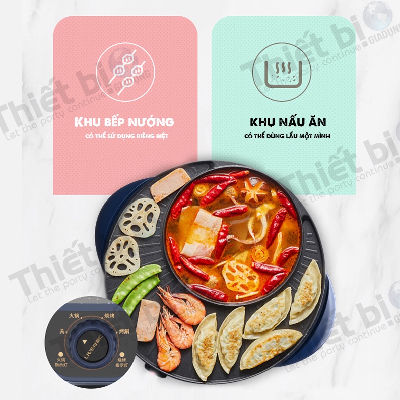 - Nồi Lẩu Nướng 2 in 1 tích hợp hai chức năng ăn lẩu và ăn nướng trên cùng một chiếc bếp, đáp ứng được nhu cầu và sở thích của tất cả các thành viên trong gia đình.