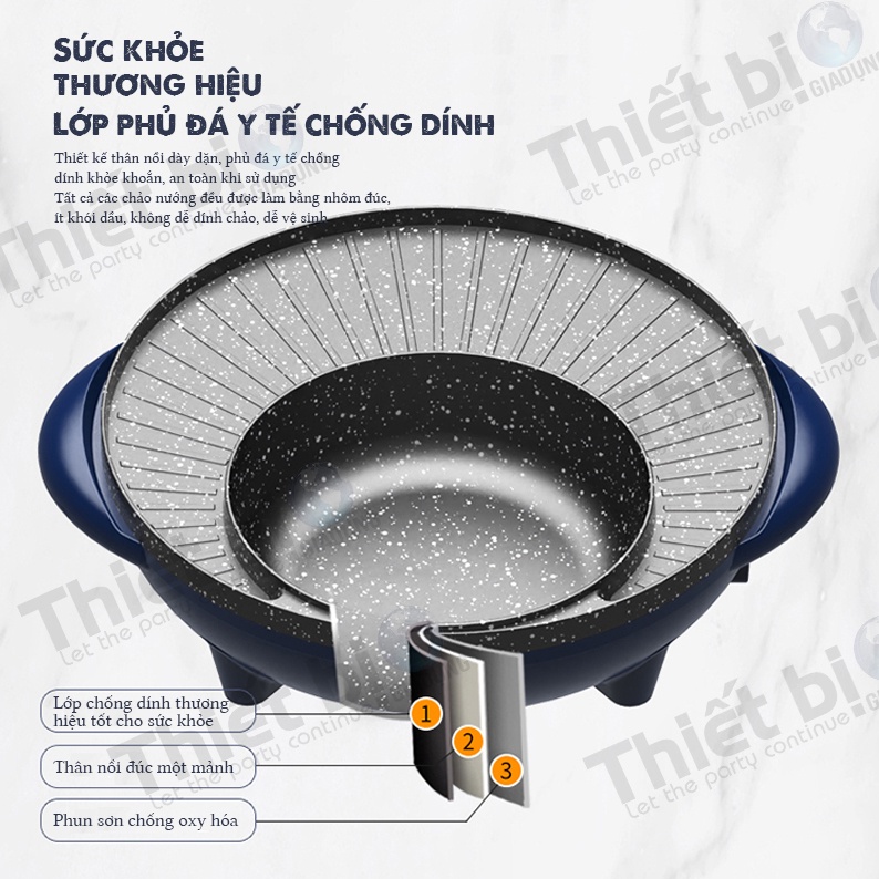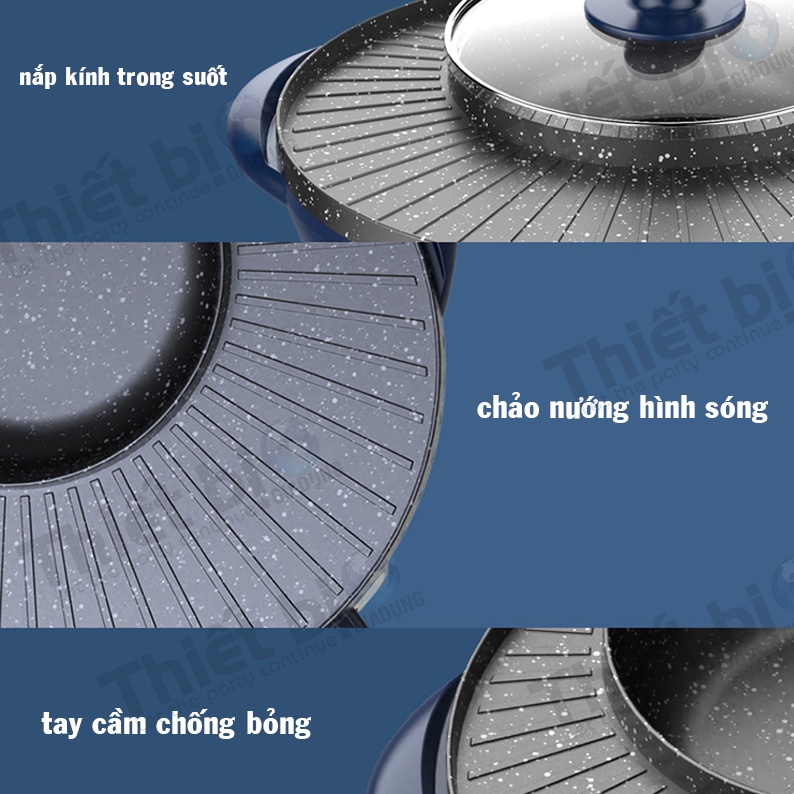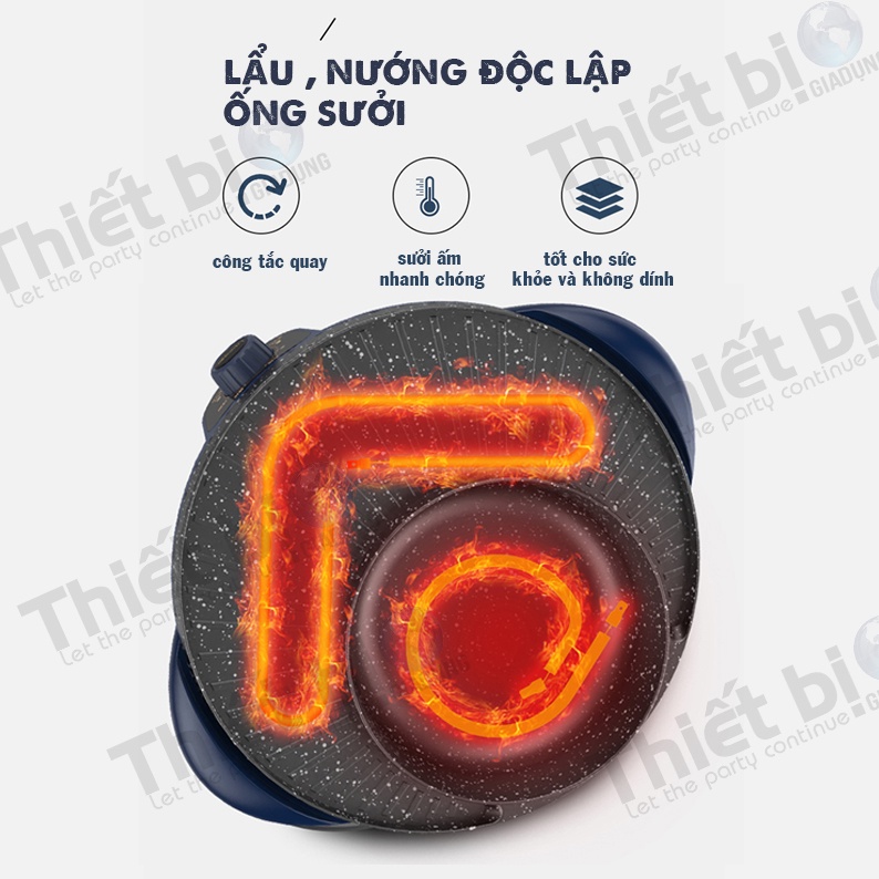 - Bếp Lẩu Nướng Đa Năng này có nhiều chức năng như: nướng, xào, lẩu, rán mặt bếp được phủ chống dính đá hoa cương truyền nhiệt nhanh, giữ nhiệt tốt, công suất 1.600W thức ăn chín nhanh hơn, ngon hơn và không mất chất dinh dưỡng từ thực phẩm, sức khỏe tốt hơn.
