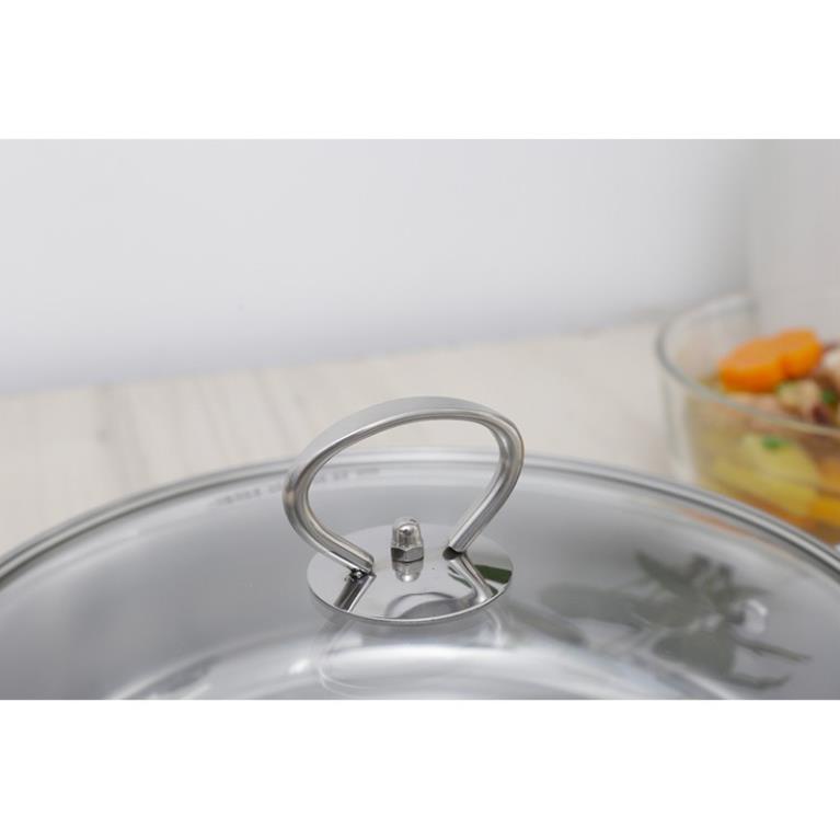 Nắp bằng kính trong suốt, dễ theo dõi quá trình nấu ăn trong nồi, lau chùi đơn giản