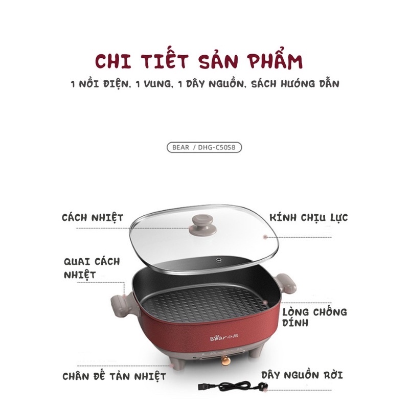 THÔNG TIN SẢN PHẨM*Tên sản phẩm: Nổi lẩu uyên ương Bear DHG-C50S8