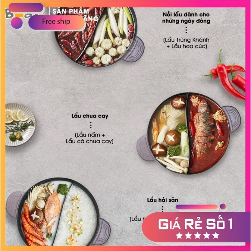 Nồi Lẩu Uyên Ương Bear Mã DHG - B60R6