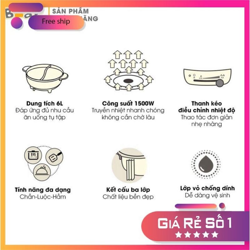 Thiết Bị Điện Gia Dụng > Đồ gia dụng nhà bếp > Nồi nấu đa năng || Nồi Lẩu Uyên Ương Bear Mã DHG - B60R6Còn hàng
