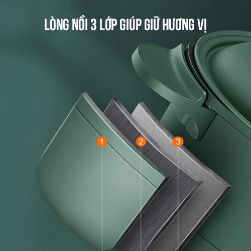- Lòng nồi: 3 lớp chống dính cao cấp