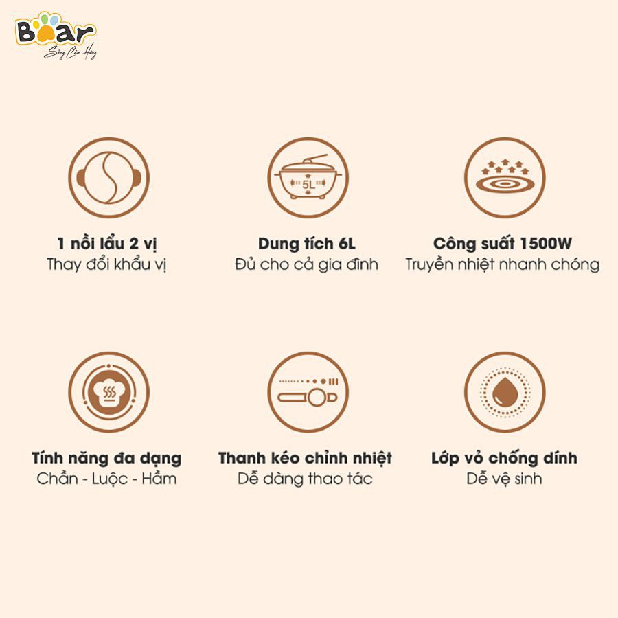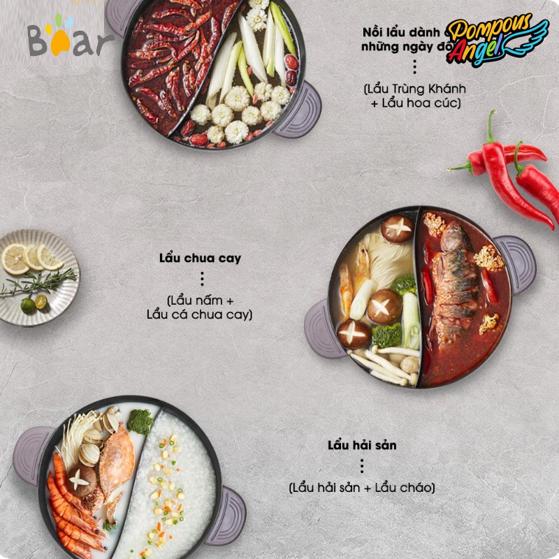 Thiết Bị Điện Gia Dụng > Đồ gia dụng nhà bếp > Nồi nấu chậm & Dụng cụ nấu chân không || Nồi lẩu uyên ương hai ngăn Bear - Bản quốc tế , dùng cho gia đình lớn nhiều người , tiện lợiCòn hàng