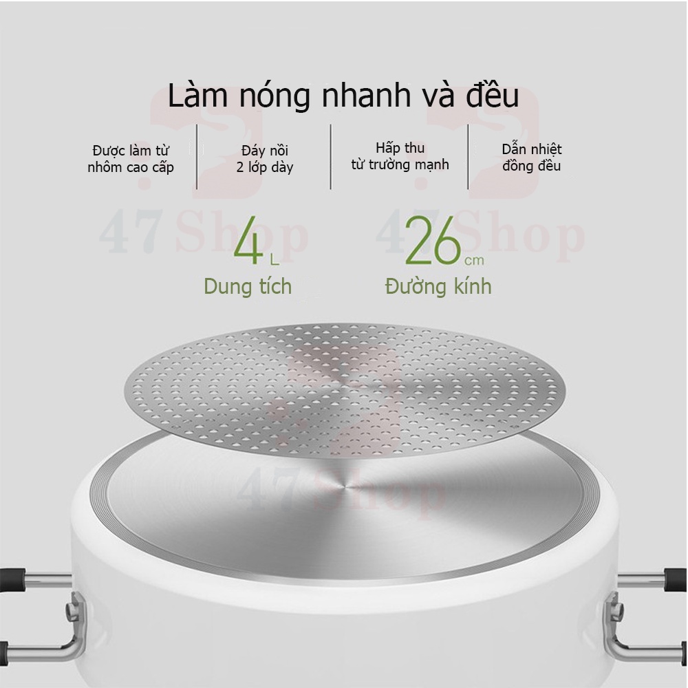 -Là một chiếc nồi thường xuyên được sử dụng để nấu nướng trong nhà bếp, do đó nồi được thiết kế khá đơn giản tạo sự tiện nghi tối đa. Kích thước khá lớn 260 x 80mm, cùng dung tích chứa lên tới 4.0L, cho phép bạn thoải mái nấu những bữa ăn thịnh soạn cho gia đình và thậm chí là đám tiệc liên hoan cũng không thành vấn đề.
