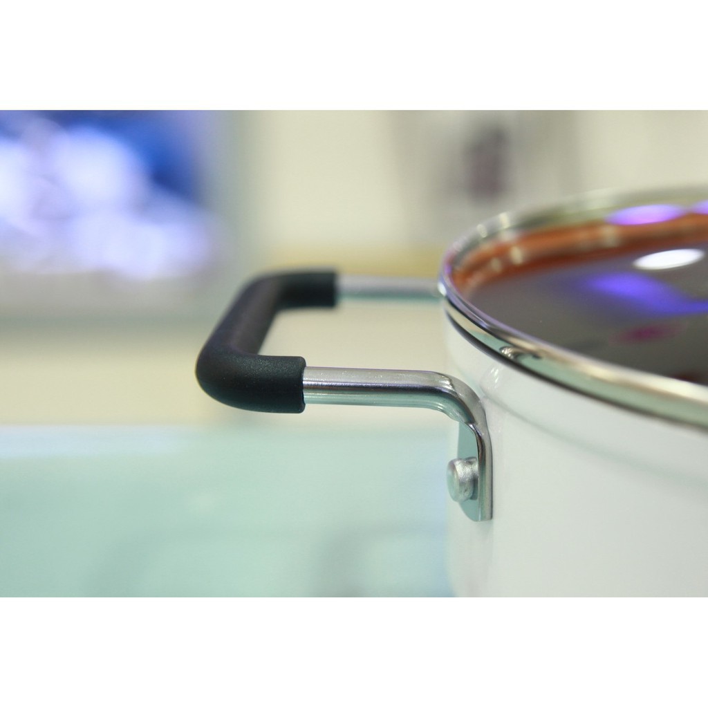 █Phía trên cạnh nồi là hai quai cầm cố định chắc chắn được bao bọc bởi miếng nhựa chịu nhiệt màu đen, giúp người dùng dễ dàng cầm nắm khi nấu nướng đồng thời bảo vệ an toàn tránh tình trạng bị bỏng khi nồi đang nấu trên bếp.