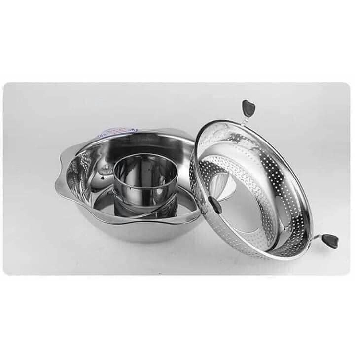 Nồi lẩu xoay 2 chiều inox cao cấp size 32 dùng được mọi loại bếp