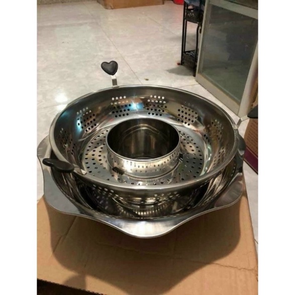 Nồi lẩu xoay 2 tầng inox Hàn Quốc, Nồi lẩu inox 2 tầng dùng được cả bếp từ và bếp gas [Hàng Nội Địa]