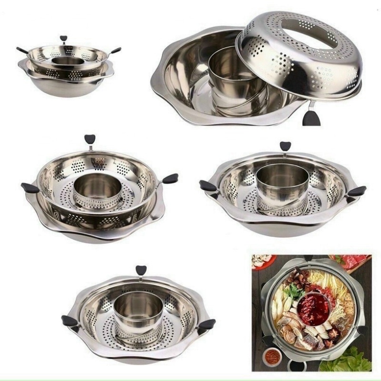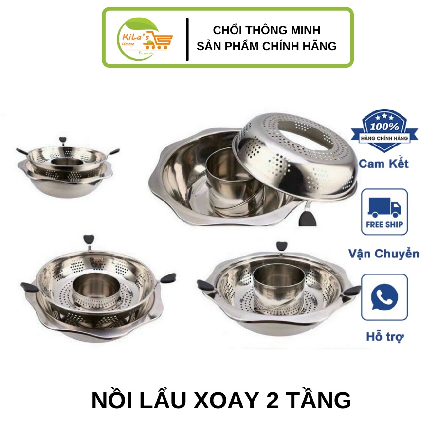 Nồi lẩu xoay 2 tầng inox Hàn Quốc, Nồi lẩu inox 2 tầng dùng được cả bếp từ và bếp gas [Hàng Nội Địa]DÙNG CHO MỌI LOẠI BẾP