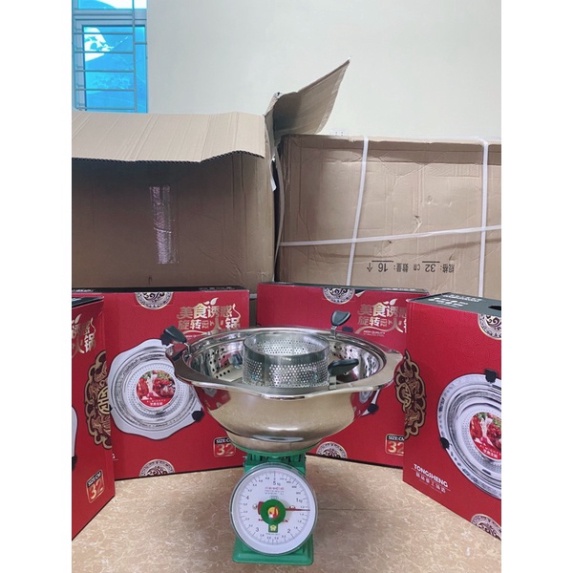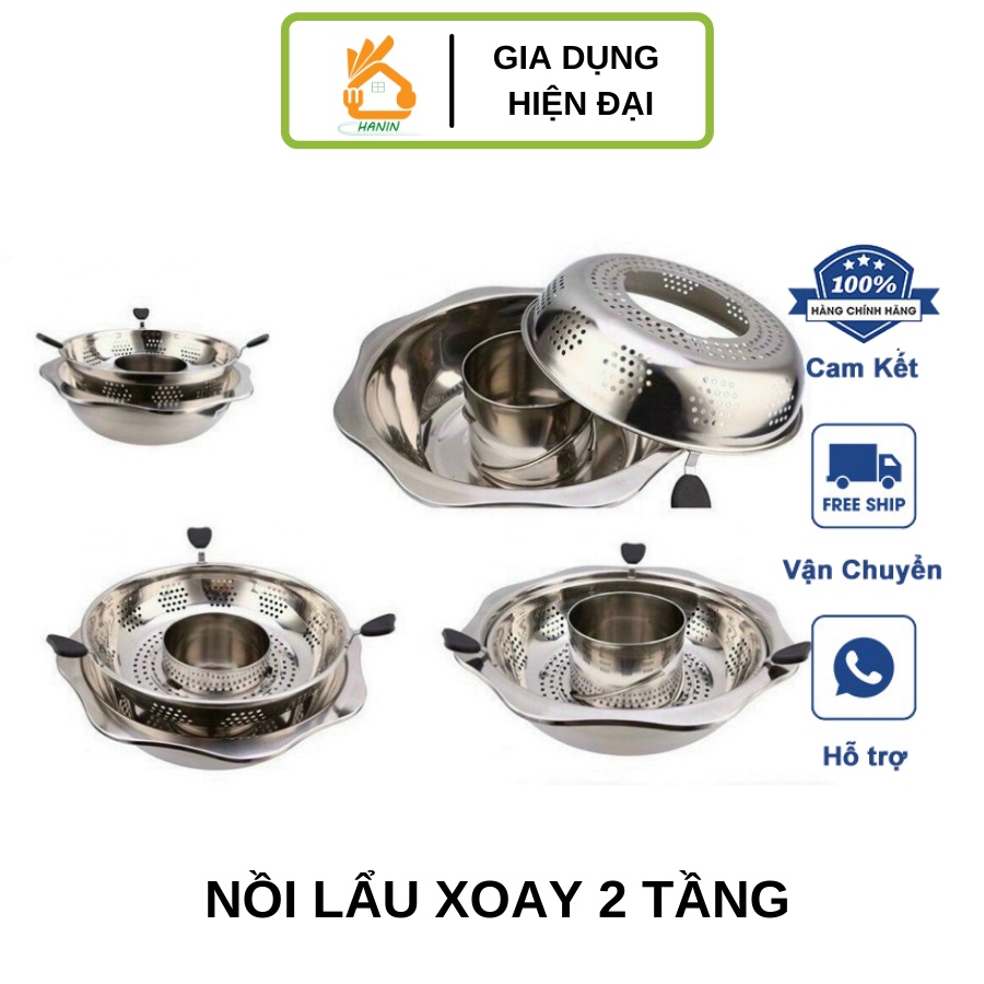 Nồi lẩu xoay 2 tầng inox - Nồi lẩu inox 2 tầng dùng được cả bếp từ và bếp gas