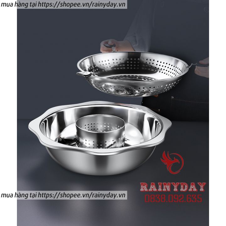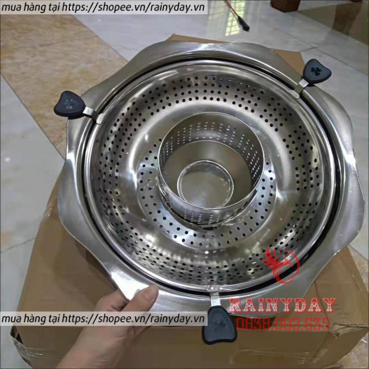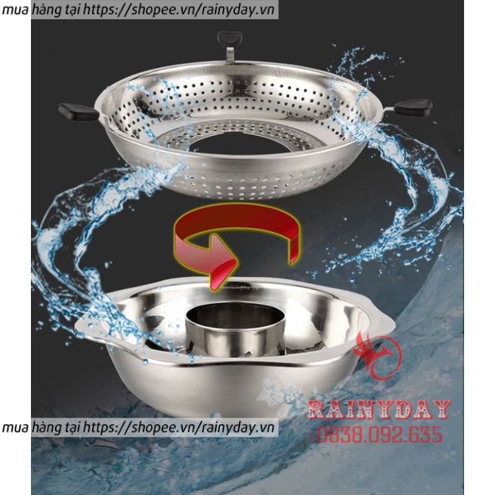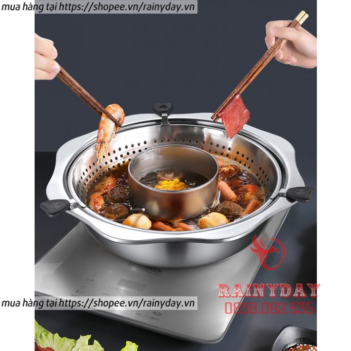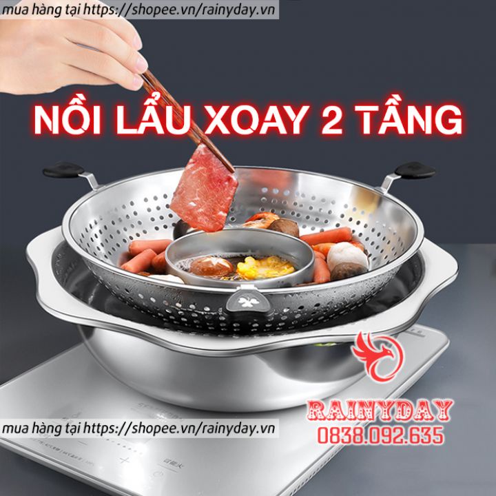 Nồi lẩu xoay 2 tầng , Nồi lẩu inox đa năng dùng được cả bếp từ và bếp gas hàng nội địa