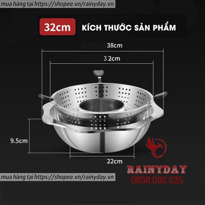 Nồi lẩu xoay 2 tầng inox không kén bếp dùng được cả bếp từ và bếp gas hàng nội địaĐặc điểm nổi bật :