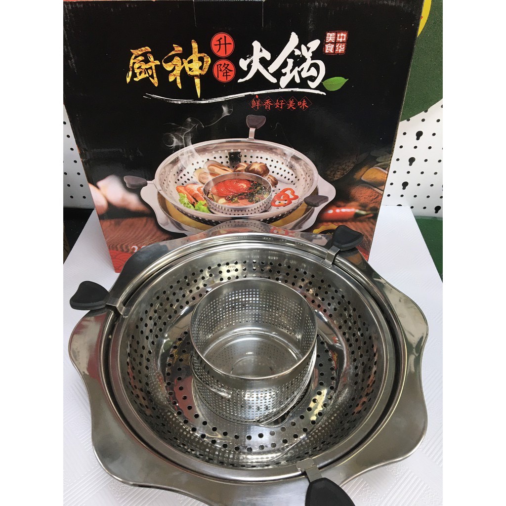 + Thiết kế 2 tầng với nồi cố định và 1 khay khi xoay lên thì có thể lọc được toàn bộ đồ ăn đã nhúng, khi ăn khỏi phải lo ngồi vớt mà vẫn bị sót đồ ăn rồi ạ.